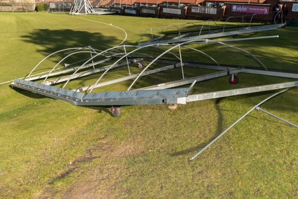 It's been an eventful build up to the new 2026 cricket season, with Storm Dave taking a starring role. It all started on Saturday 4th April, with an afternoon friendly against Stockton, we lost in a high scoring game, however that evening turned out to be far more eventful, as 60-70 mph winds battered the NBMS Denton Bank ground. The images below capture the devastation that emerged on the Sunday morning, yes your eyes dont deceive you, some how one of the covers managed to scale the wall and end up on the West Road in the early hours, causing a temporary road closure into the bargain.