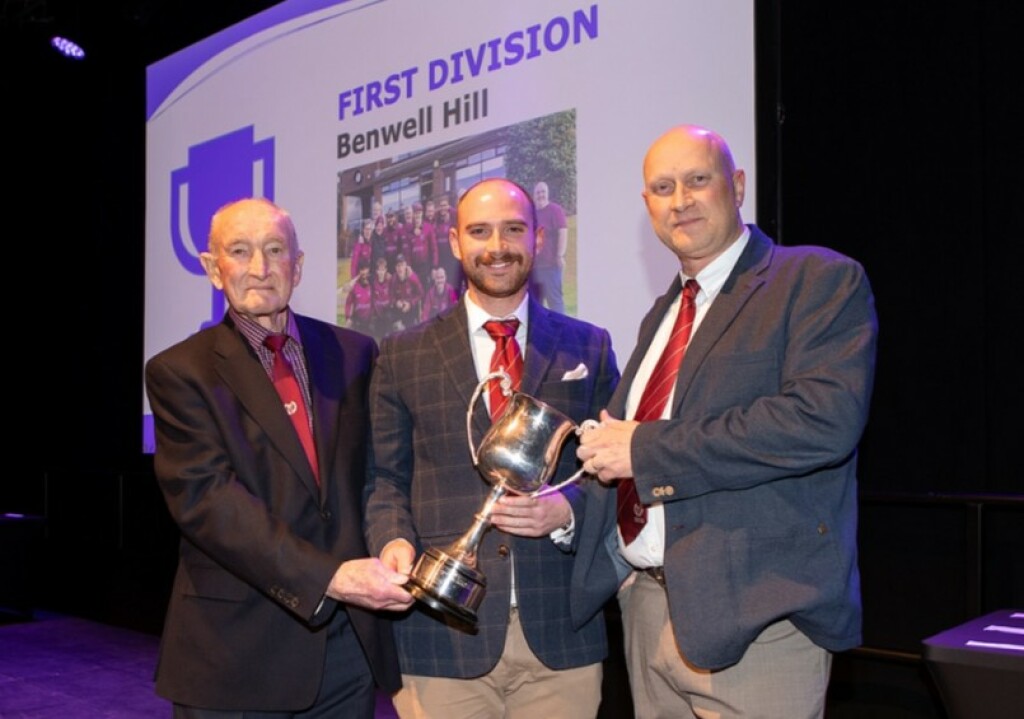 The Hill were officially presented with the North East Premier League Divisione One trophy on Friday 28th November at the Annual North East Premier League dinnner. Vice Captain Max Williamson collected the Trophy on behalf of the Hill, with skipper Phil Bell away in sunnier climes. Max unfortunately narrowly missed out on also collecting the League Player of the Year award, losing out to ex Hill player Mohsin Mukhtar in the final standings.